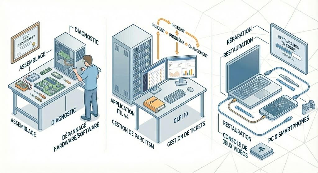 Maintenance Matérielle : Certification Cisco IT Essentials 7 (Assemblage, diagnostic et dépannage hardware/software).